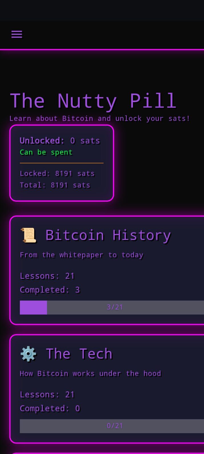 Eine sehr coole Bitcoin-Lern-App, die die Lernenden mit Satoshis belohnt, die man zuvor einzahlt.