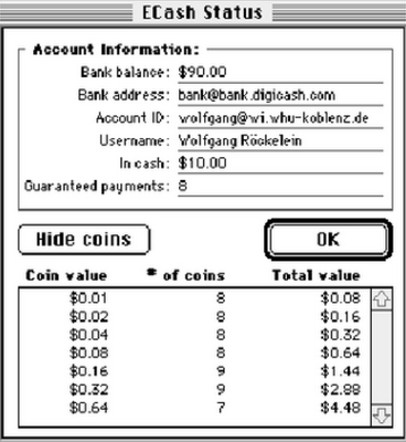 Präsentation von eCash basierend auf «Blind Signatures for Untraceable Payments»